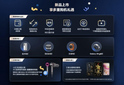 活动期间通过三星商城下单选购三星Galaxy S25系列,不仅可以选择专属配色,还能享受免息分期或以旧换新补贴等惊喜福利,减轻一次性购机的压力,轻松拥有智能新机。此外还有多重好礼,让用户享受一步到位的旗舰级智能体验。